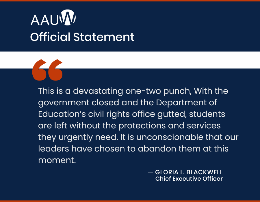 AAUW: Government Shutdown and Court-Approved Civil Rights Firings Are a Devastating Betrayal of Students