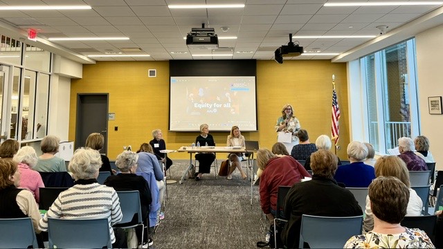 The North Hills Pittsburgh Branch board annually reviews the criteria for the 5-Star Program. This shapes our branch strategy and programming. We have a partnership with La Roche University an AAUW Institution Member. We engage students to explore becoming branch members and apply for our Incentive Grant. Funds are raised through our annual fundraiser “For the Love of Books.” We collaborate with the LWV Greater Pittsburgh and La Roche University to conduct voter registration on campus twice a year.